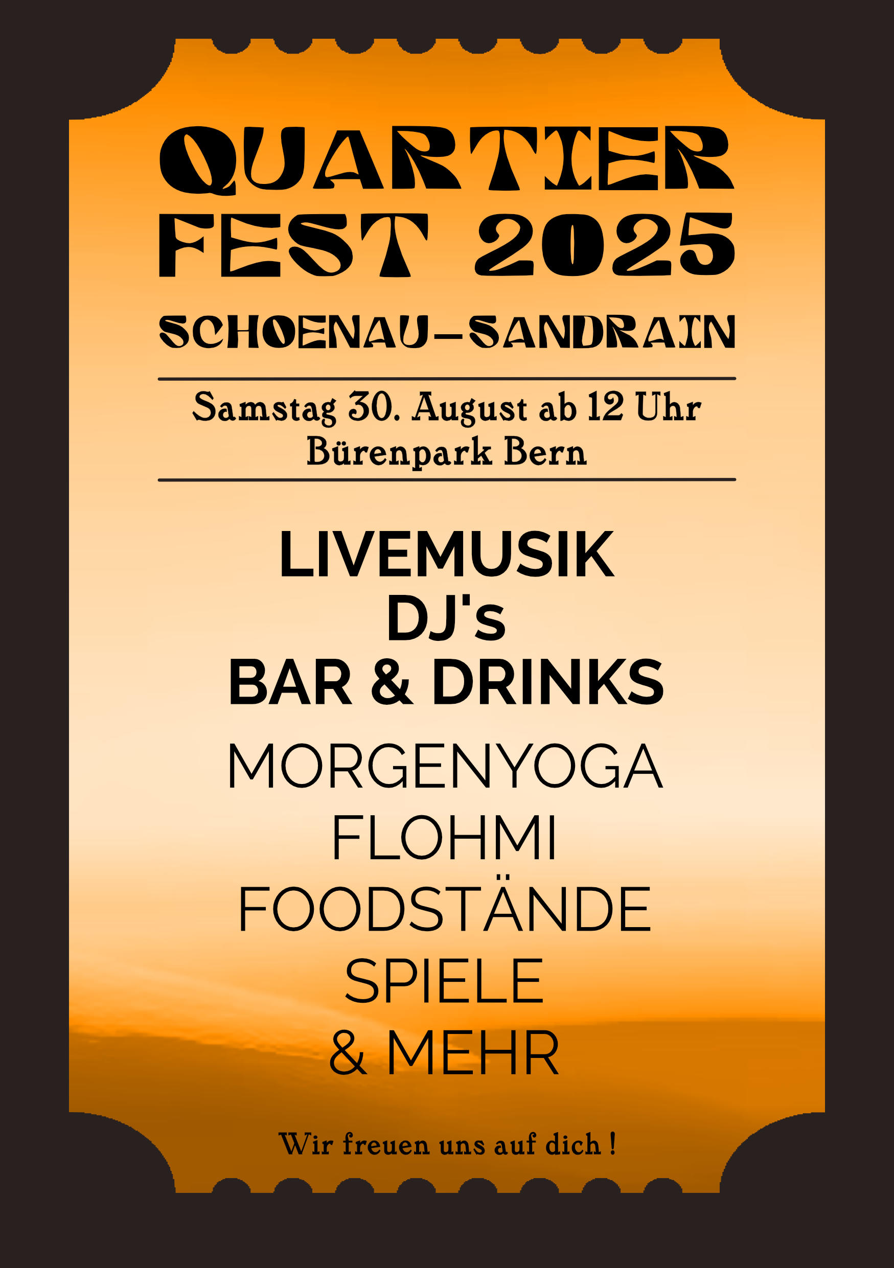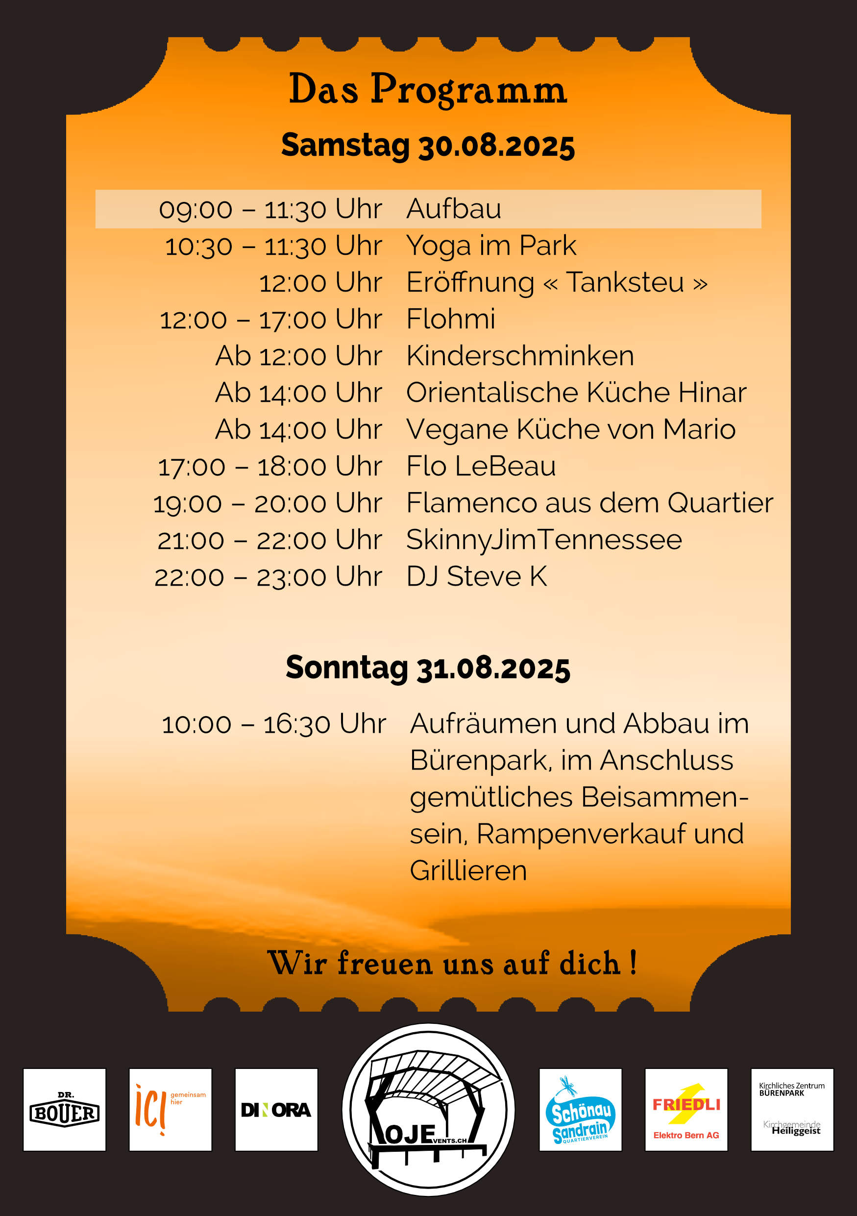 Datum: Samstag 30. August 2025 ab 12 Uhr im Berner Bürenpark. Chunnsch oh? Also ab in die Agenda mit dem Datum!